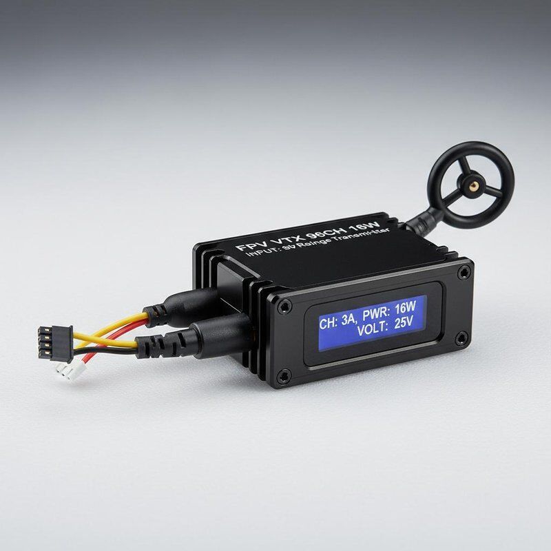 Professional FPV video transmitter built for pro pilots, featuring stable signal, sharp image and durable structure.