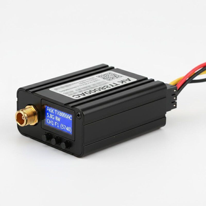 The AKK TX8000AC is a high-performance 5.8GHz FPV video transmitter with 8W power and 96 channels, delivering stable long-range transmission and clear footage for drone enthusiasts.