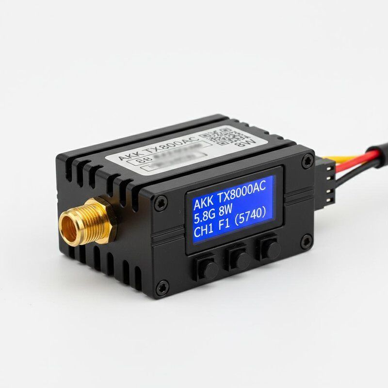 The AKK TX8000AC is a high-performance 5.8GHz FPV video transmitter with 8W power and 96 channels, delivering stable long-range transmission and clear footage for drone enthusiasts.